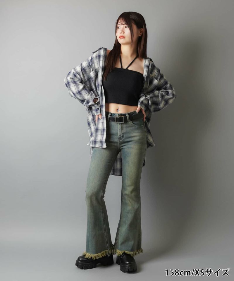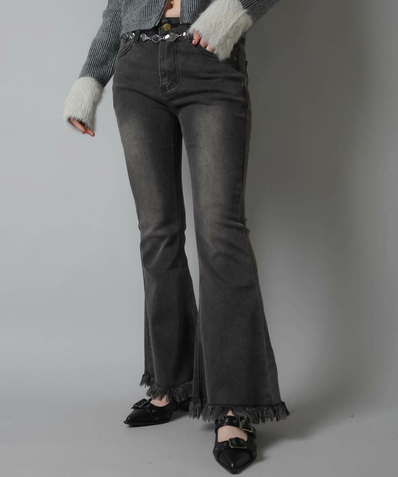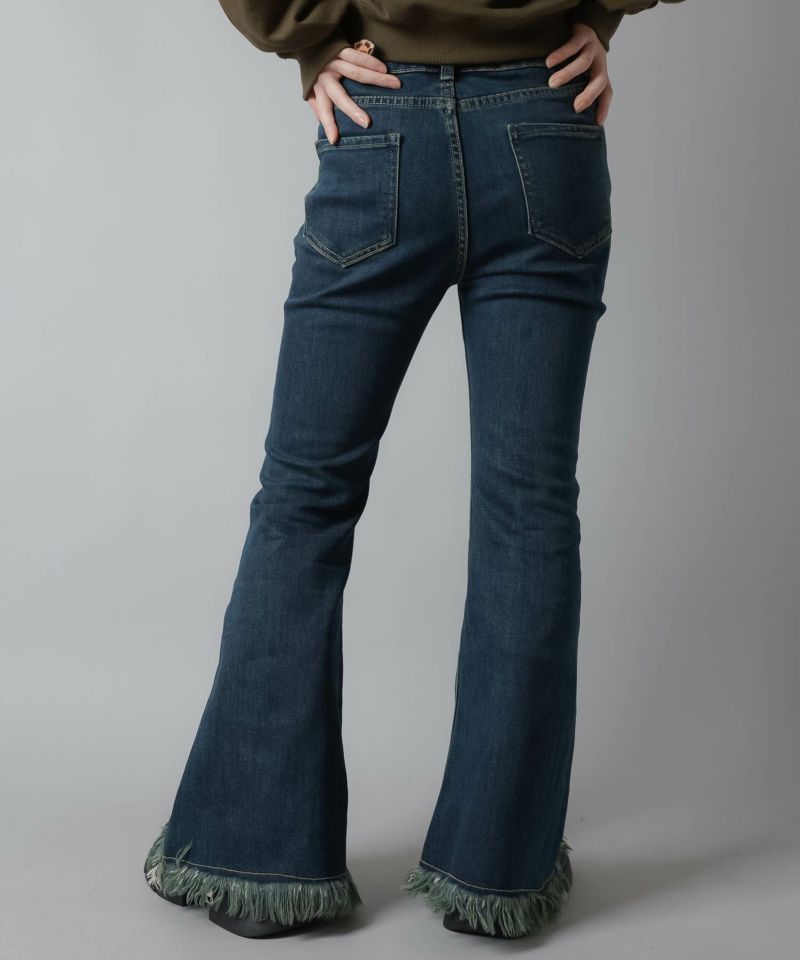 【履くだけで旬なコーデが完成!脚長効果◎フリンジフレアデニムパンツ】