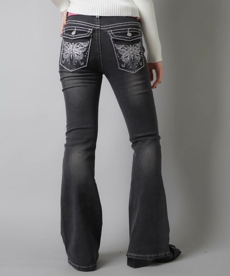 【ギャルがリバイバル⁉ギャルっぽ☆蝶々ラインストーンデニムパンツ】