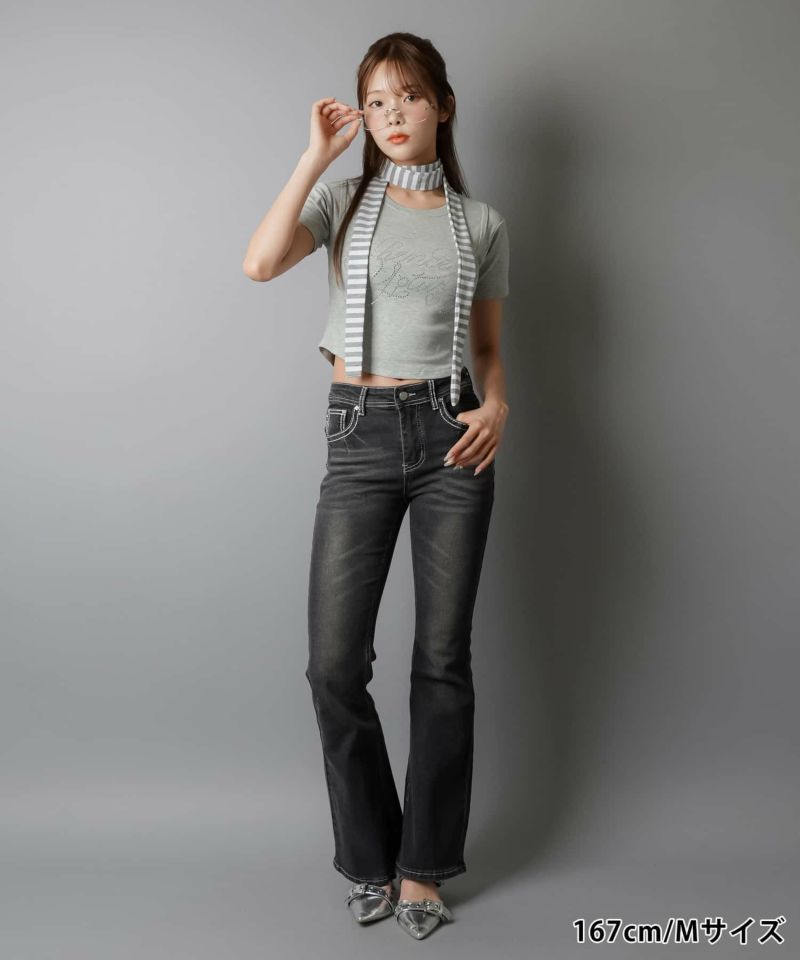 2:後ろポケット部分のラインストーンが高見えするアイテム