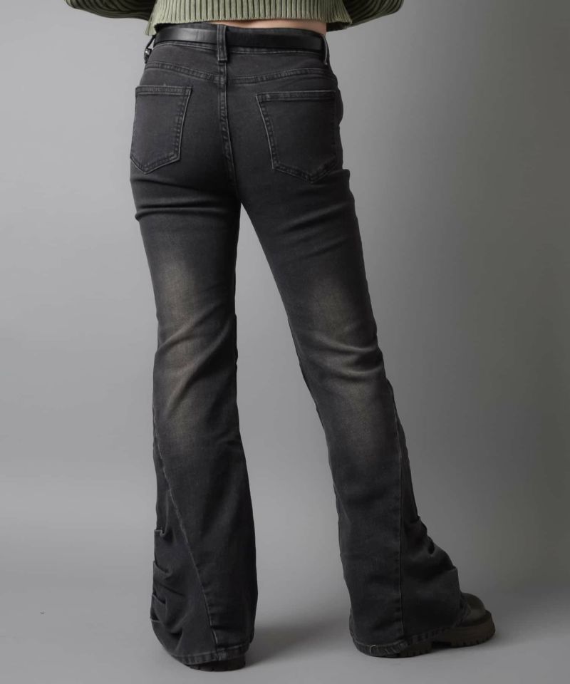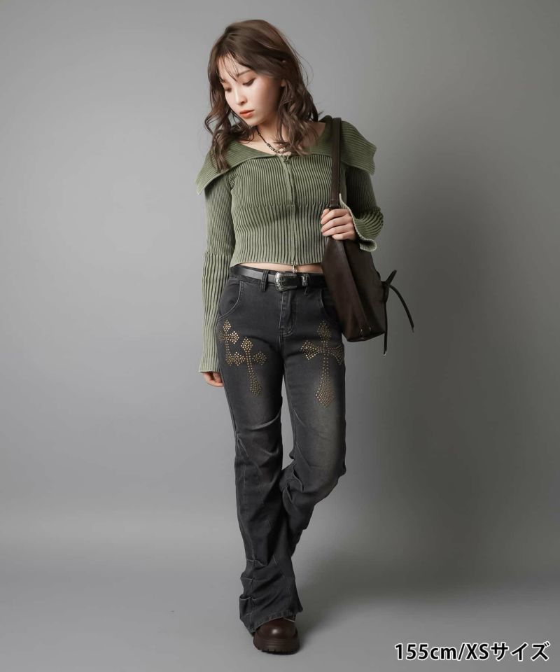 【ギャルがリバイバル⁉クロススタッズが目を惹くギャルっぽ☆なギャザーデニムパンツ】