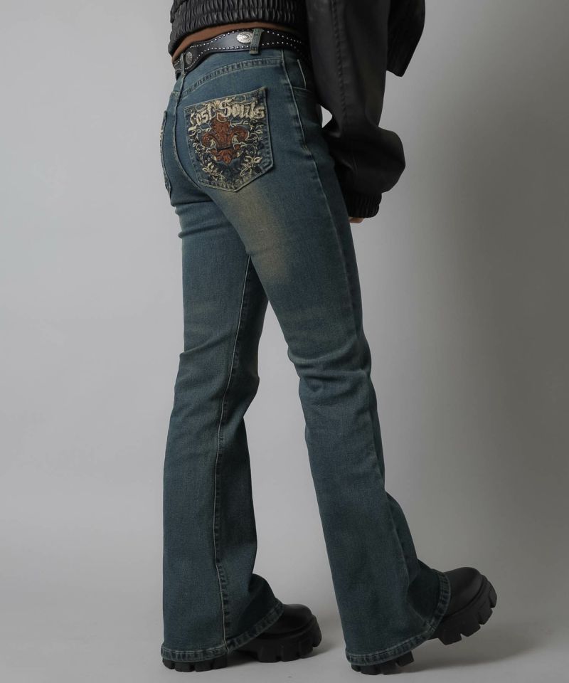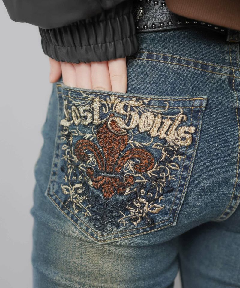 【ギャルがリバイバル⁉ギャルっぽ☆ポケット刺繍デニムパンツ】
