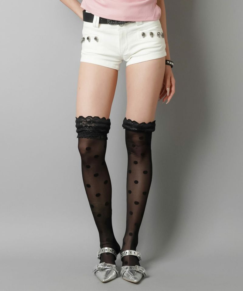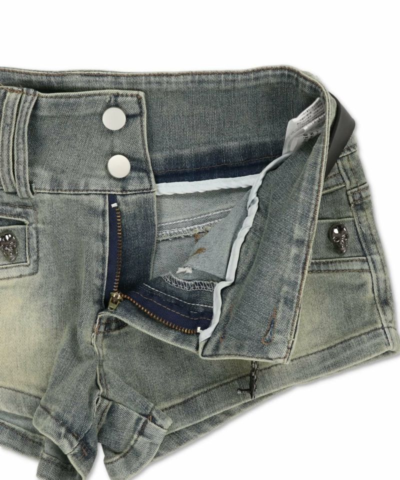 【44%OFF】デニム超ショートパンツ/スカルスタッズ/ベルト付き
