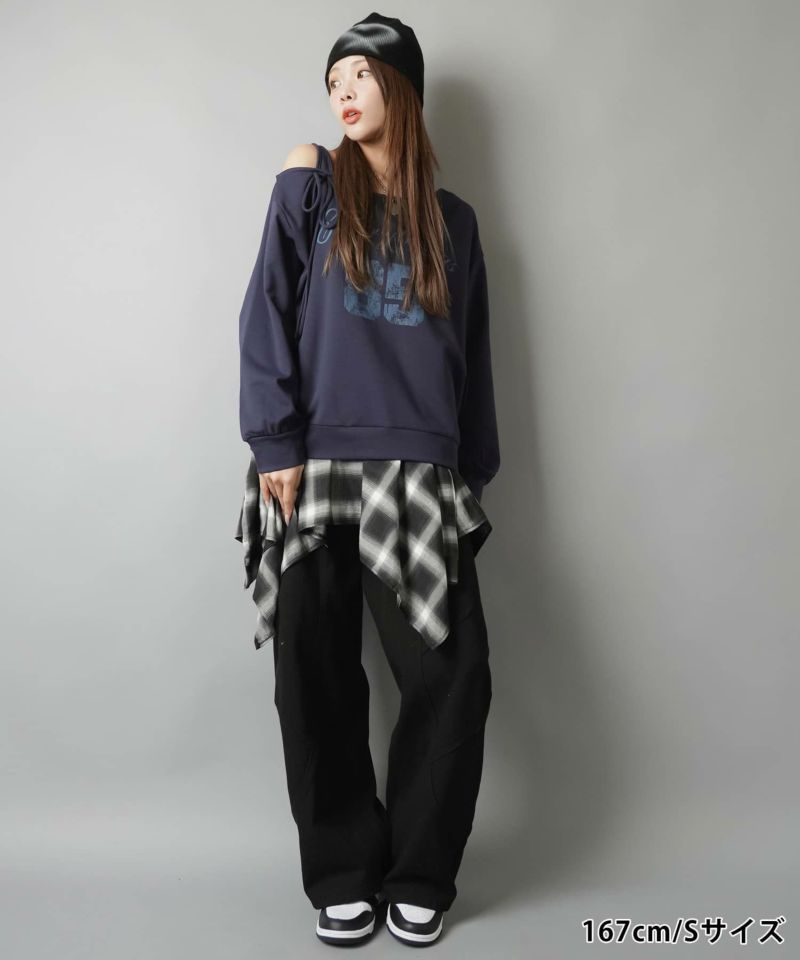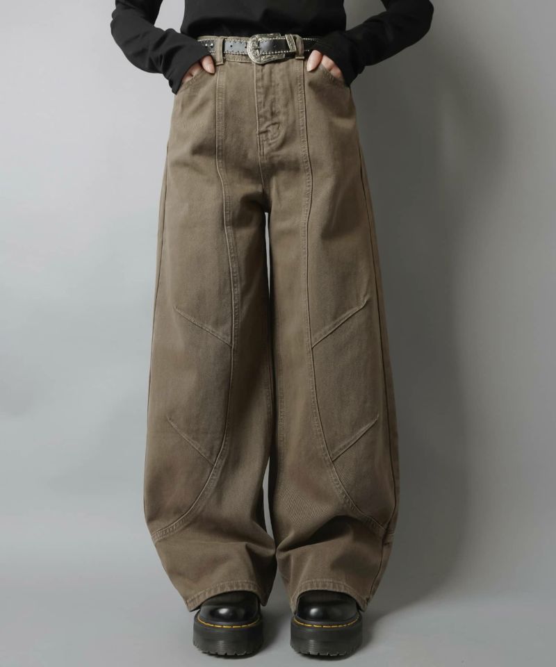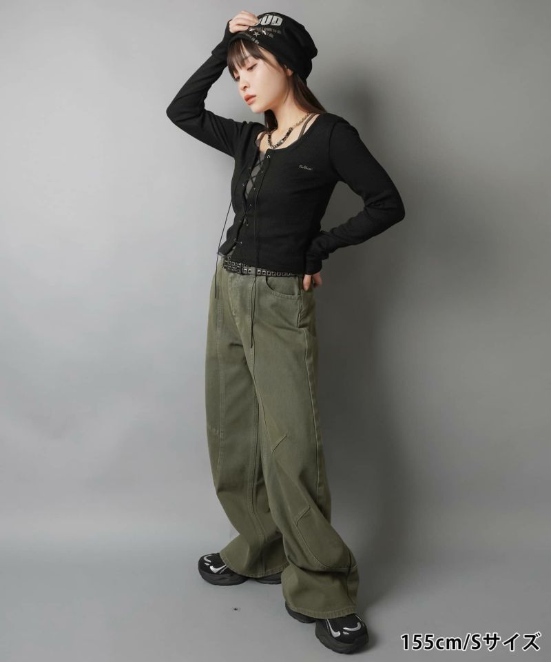 2:裾に溜まるボリューム感があるパンツでタイトなトップスとの相性抜群