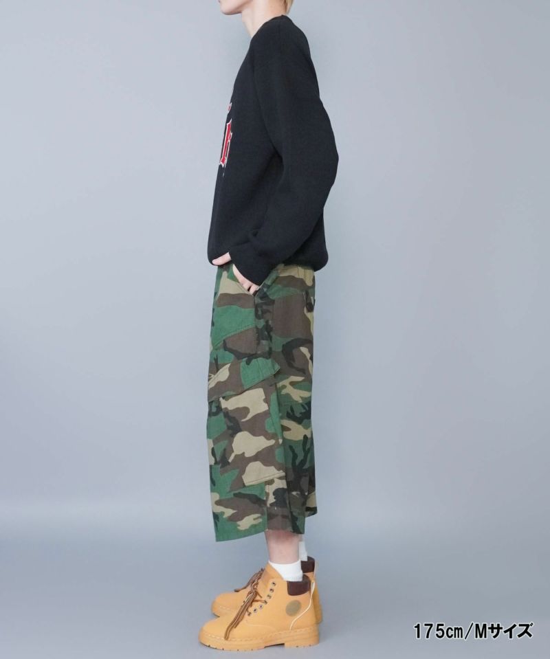 トレンドのミリタリーテイストを感じさせるカモフラ柄が特徴で、
