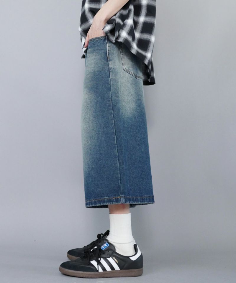 膝下丈デニムハーフパンツ。