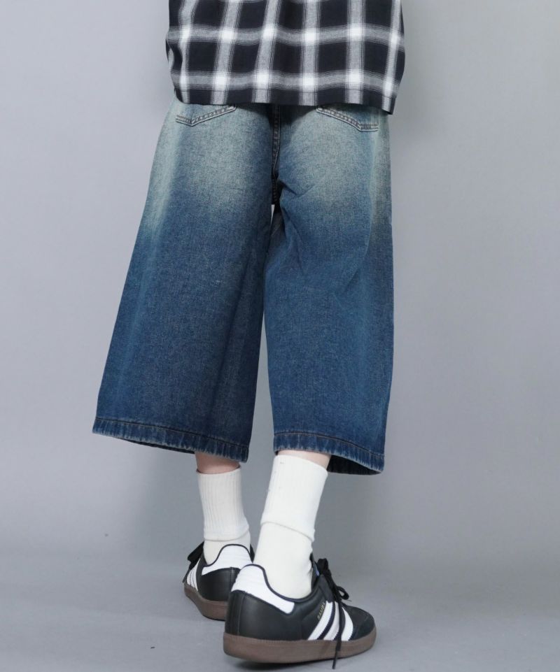 絶妙な色落ちと風合いが魅力のヴィンテージ加工デニムハーフパンツ。