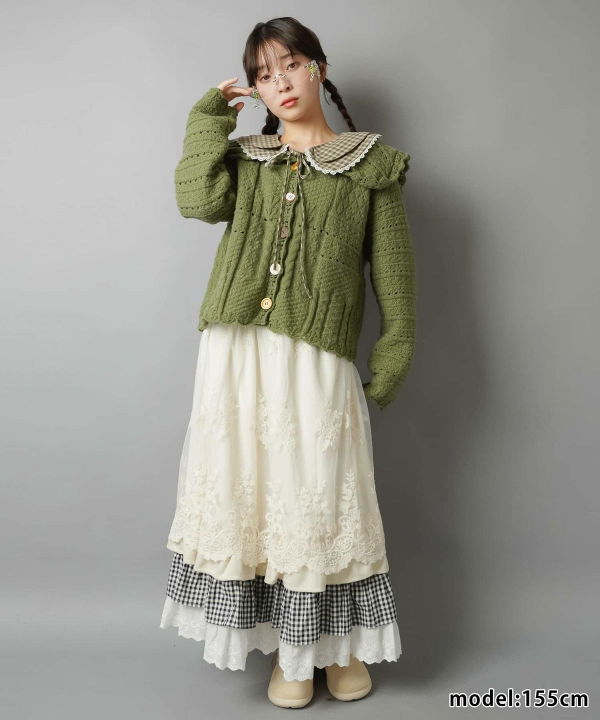 SOLD OUT 他の画像を見る レース×フリル×ギンガムチェック…♡重ねた質感がとびきり可愛い♪ 異素材レイヤードロングスカート/4段レイヤード/レース/#NEO森ガール ¥ 5,489 税込 再入荷 カートに入れる お気に入りに追加