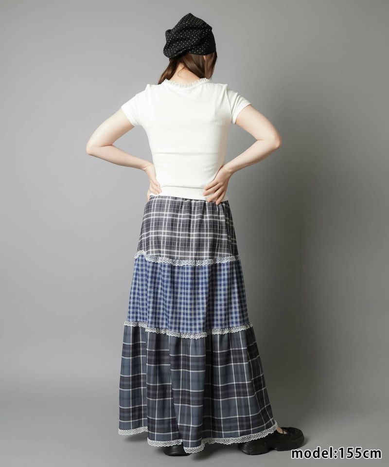 【レトロな雰囲気が可愛い!ツギハギチェックロングスカート】