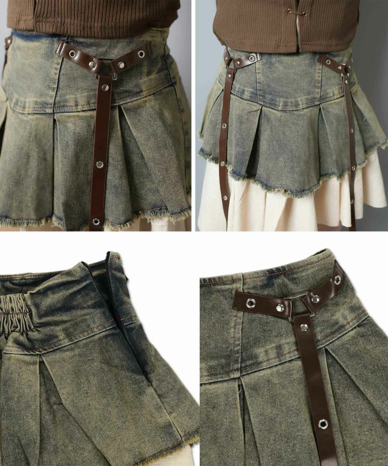 デニム×フリルの異素材を組み合わせた、着るだけで主役級のレイヤード風スカート。