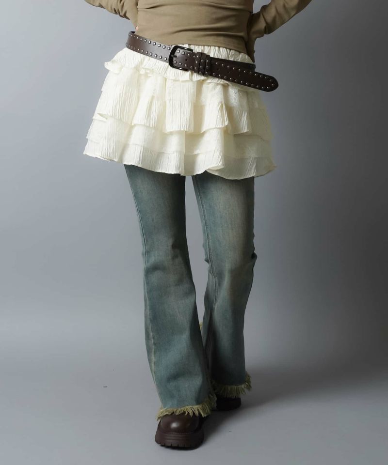 【88%OFF】ティアードミニスカート/しわレース/インナーパンツ付き