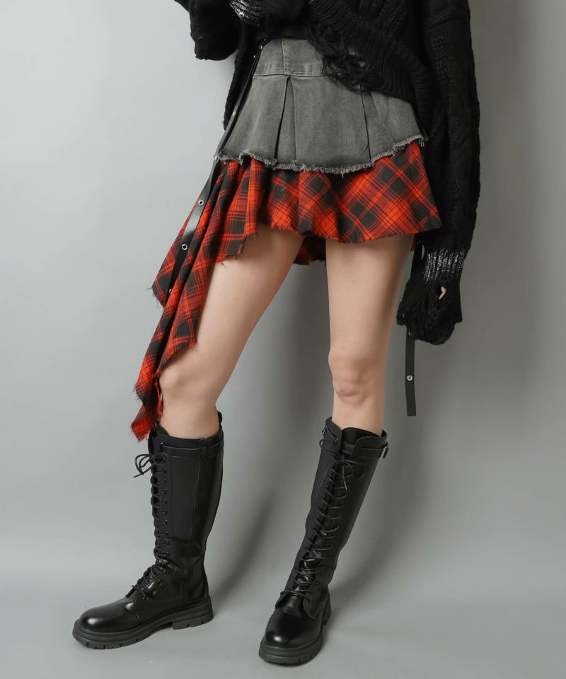 【トレンドのロマンスパンクスタイルを叶えるイレヘムチェック柄ミニスカート】