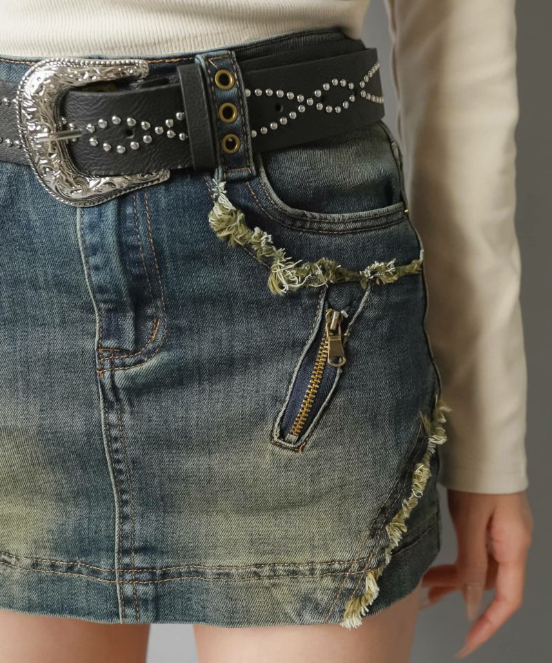 【ギャルムード全開♡フリンジ×ジップの最強デニムミニスカート】