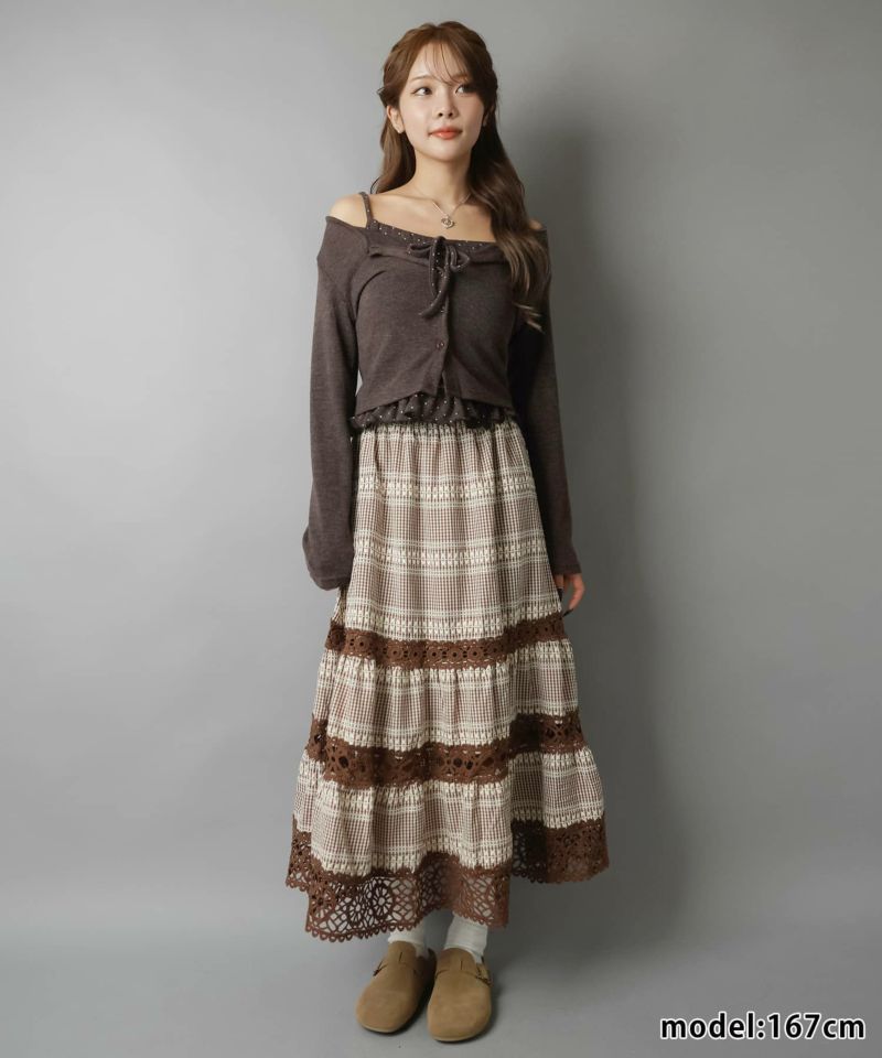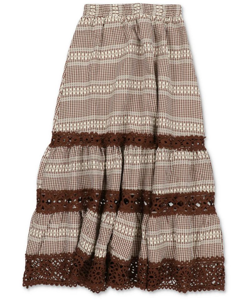 【レトロな雰囲気が可愛い♡レース×チェックの異素材ロングスカート】
