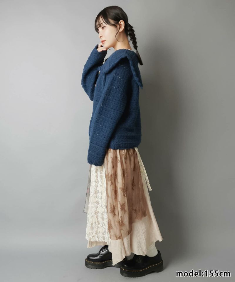 【レトロな雰囲気が可愛い♡異素材ドッキングロングスカート】