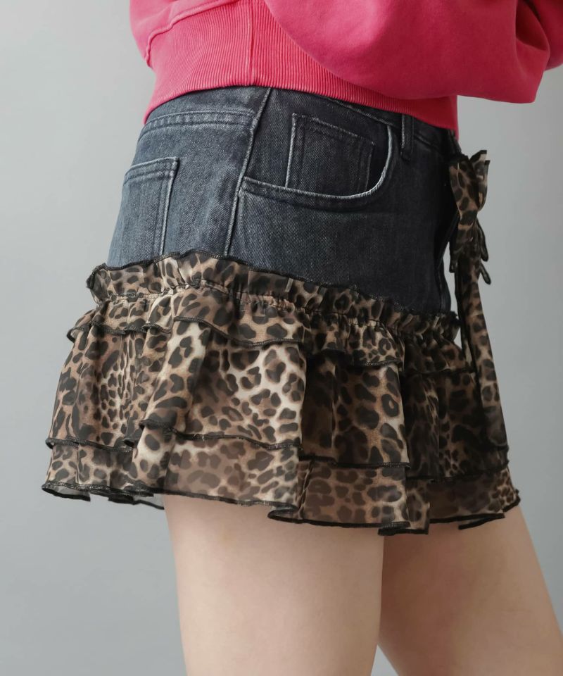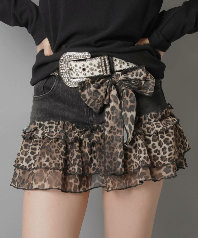 【ギャルがリバイバル!スタイルアップにも◎レオパード×デニムミニスカ】
