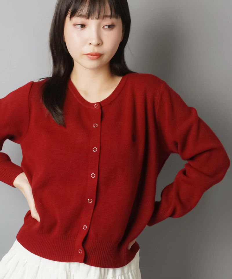 1:シンプルなワンポイント刺繍のスナップボタンカーディガン