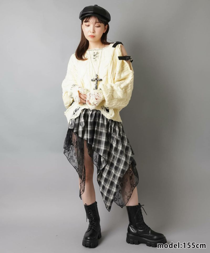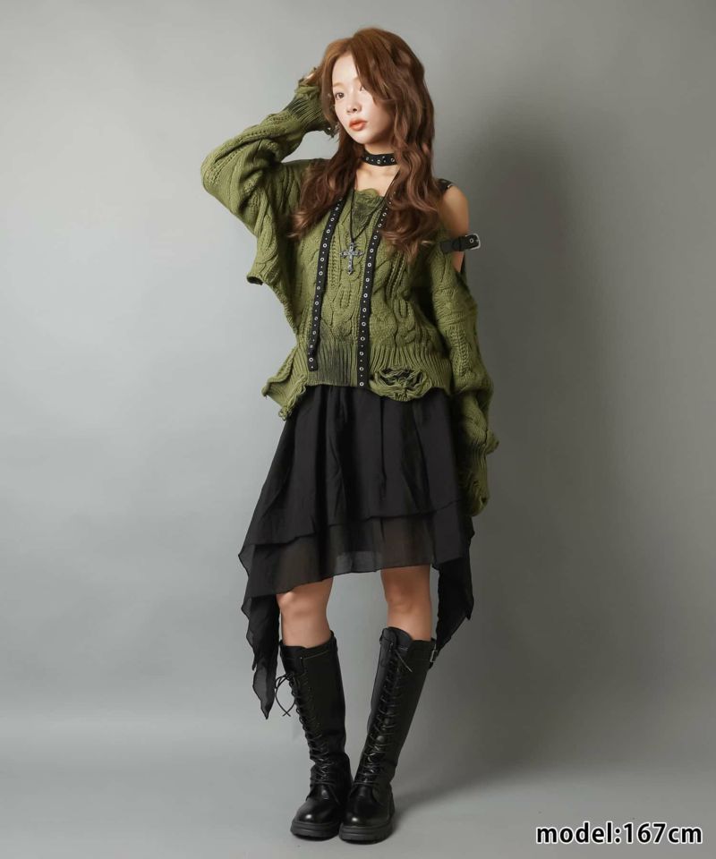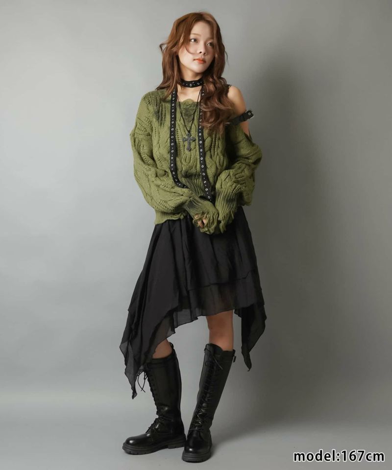 【ダメージデザイン+ワンショルでちょっぴり肌見せヘルシーに?】