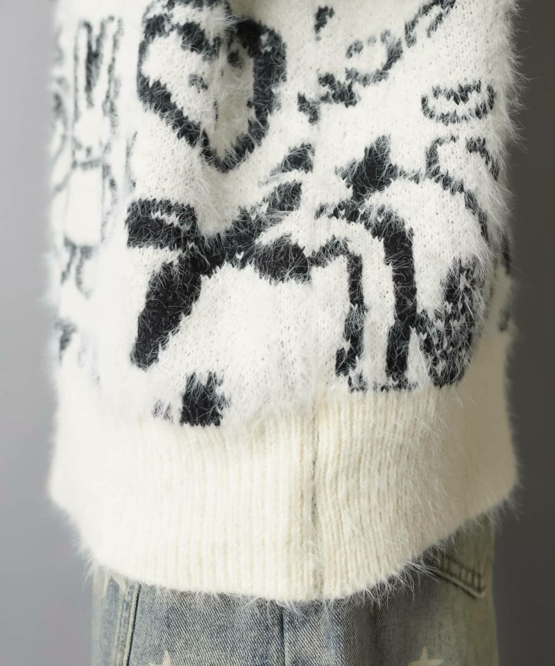 【41%OFF】シャギーニット/落書き風/袖ボーダー/#ドリームコア