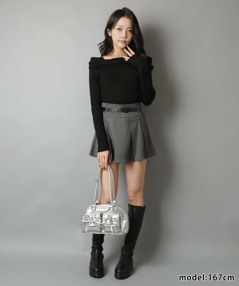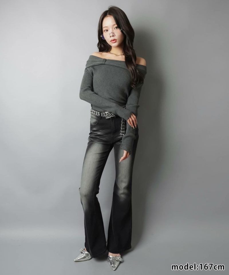1:デコルテラインが綺麗に見えるオフショルデザイン