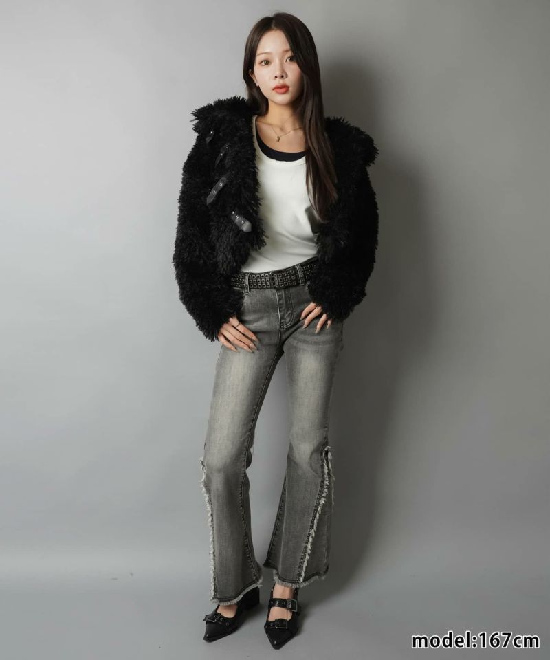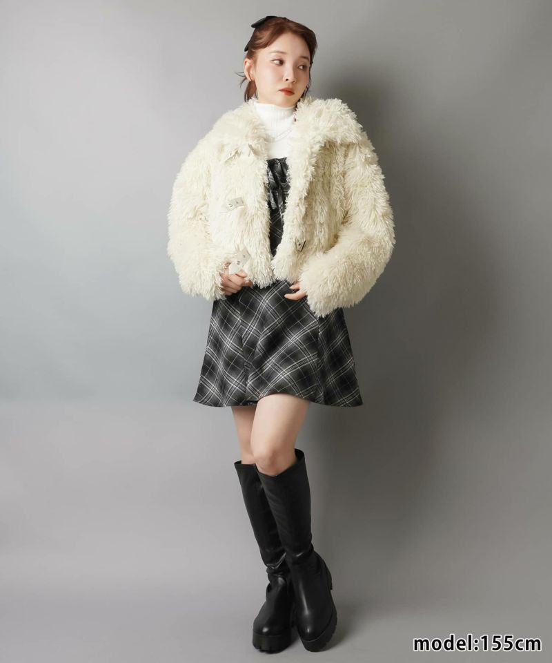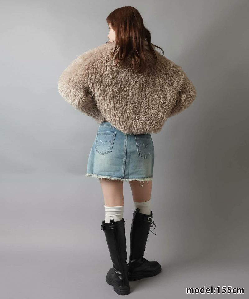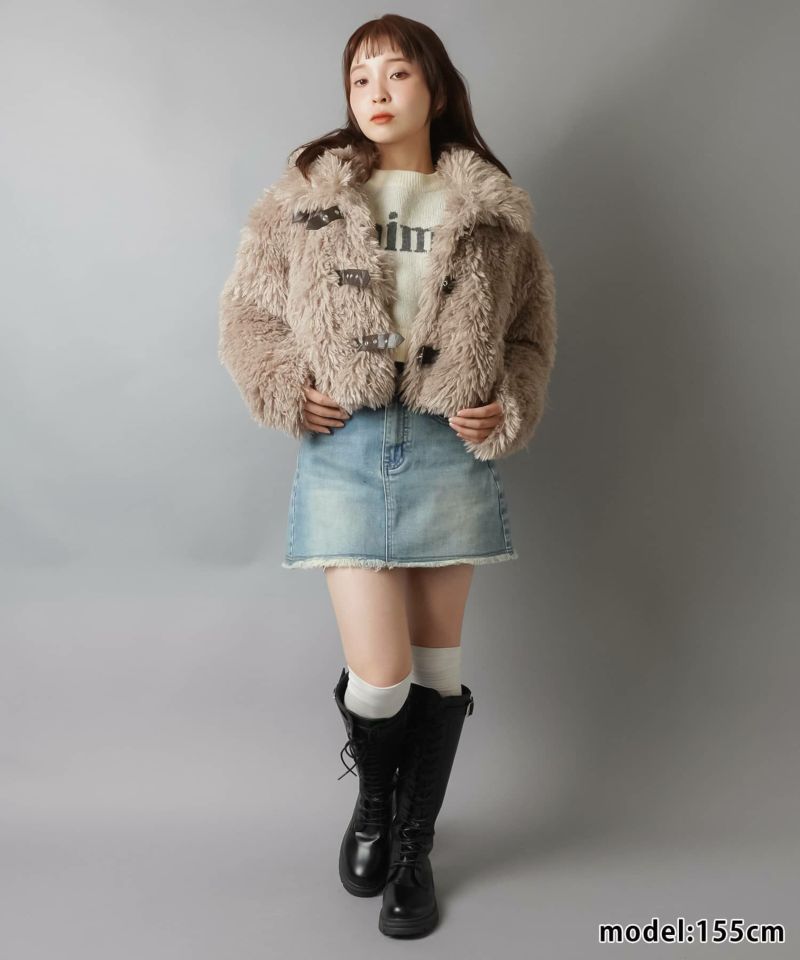 立体感のある毛足が可愛らしく、1枚で季節感たっぷりの主役級アイテム。