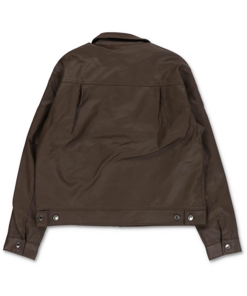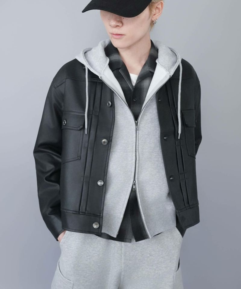 ショート丈のフェイクレザージャケット。