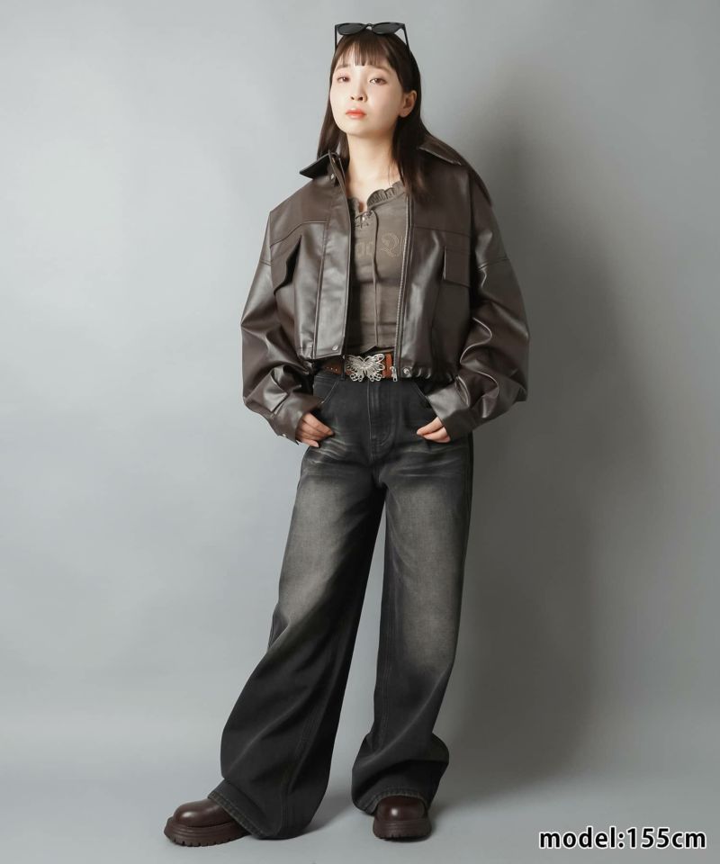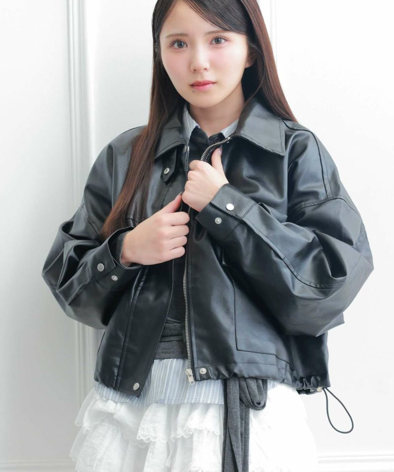 裾のドローコードでシルエットを変えられる! ショート丈合皮ジャケット