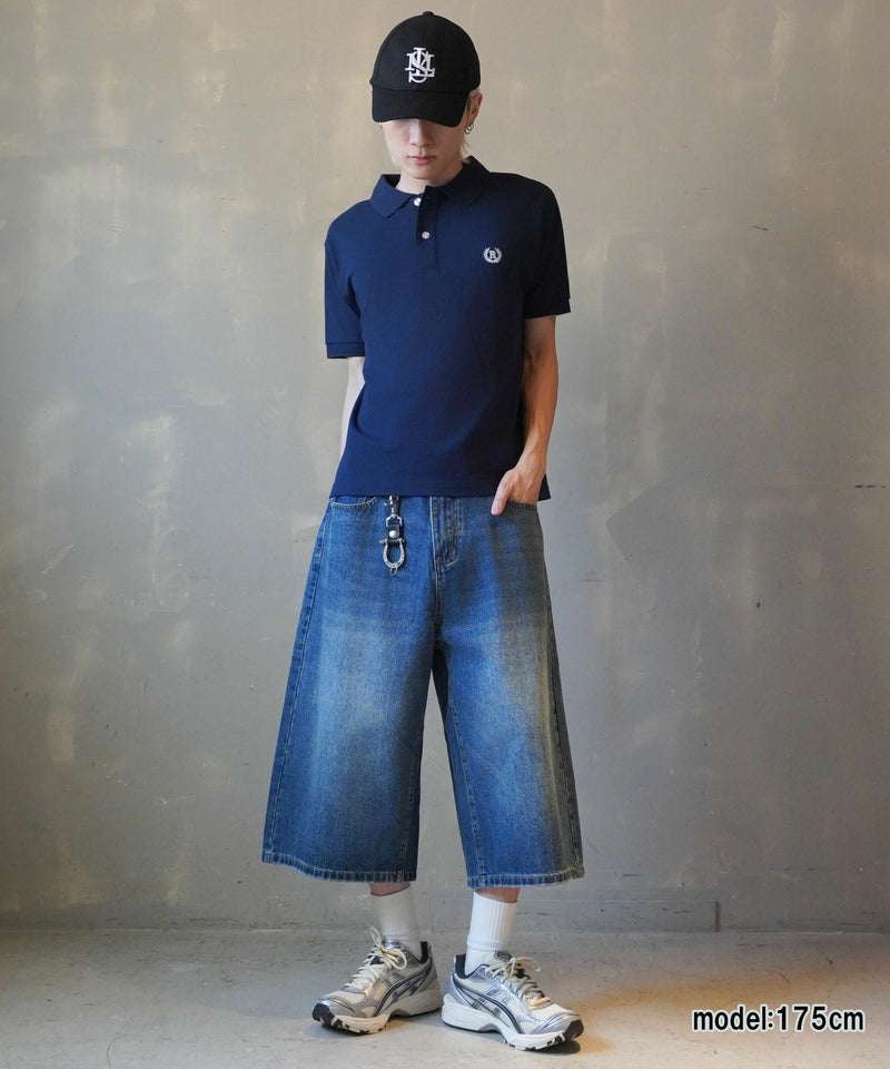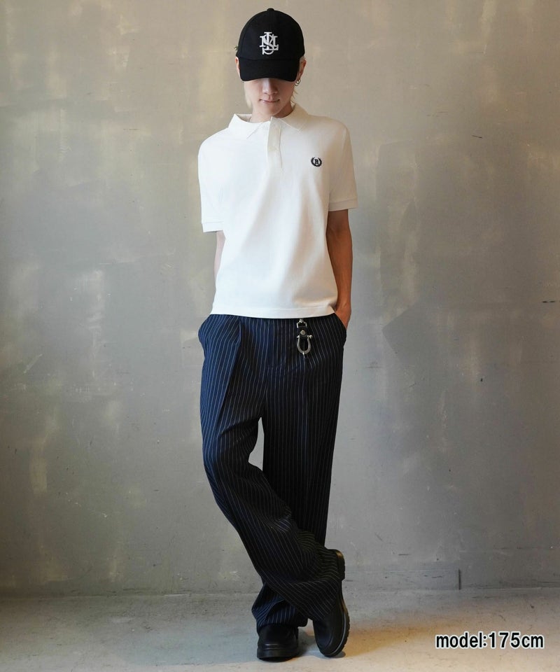 胸元のエンブレム風ワンポイント刺繍が映える、