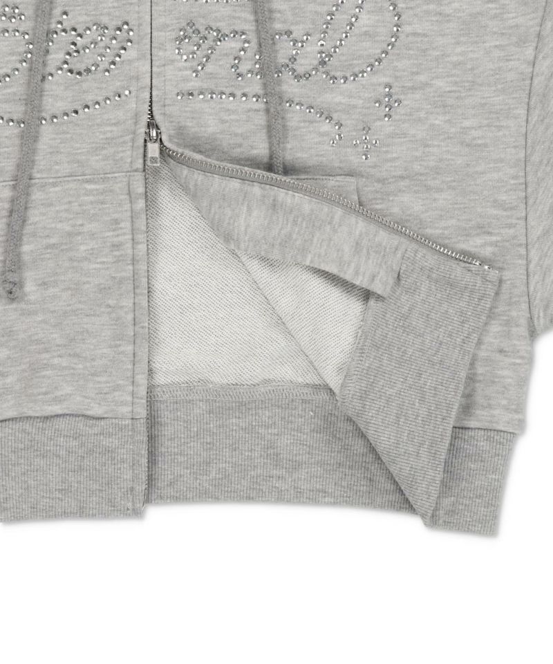裏毛ショート丈ジップパーカー/ラインストーン