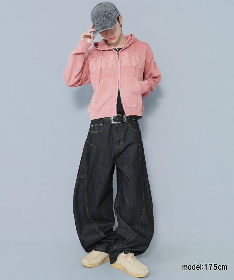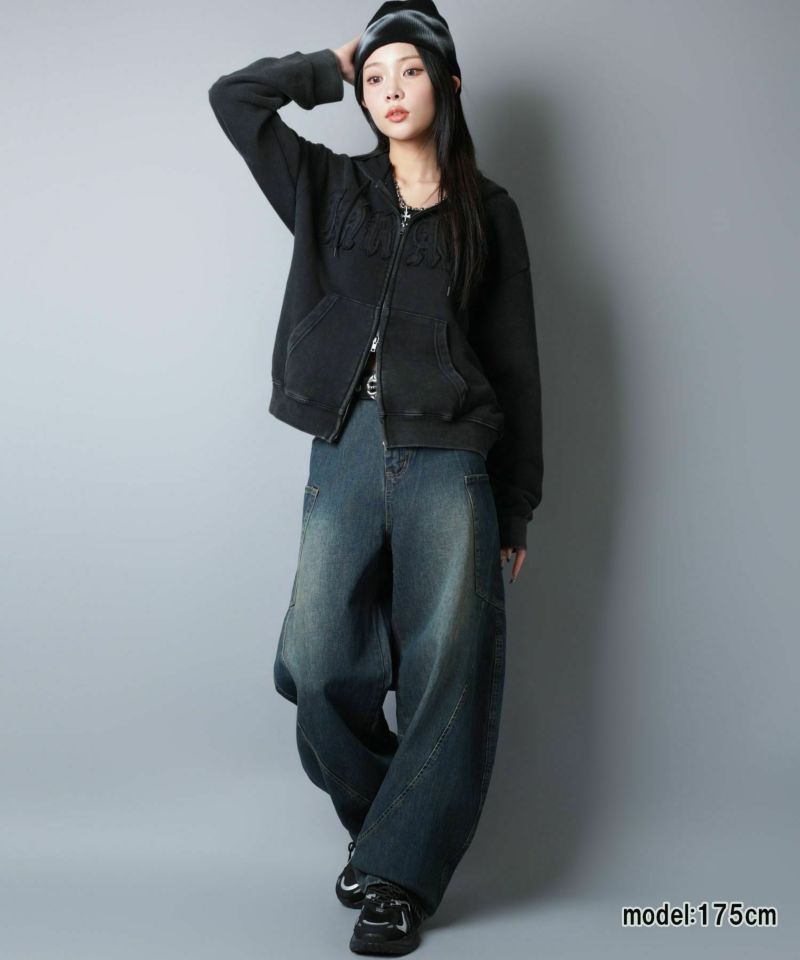 ワークテイストを感じさせる 短丈ダブルジップパーカー。
