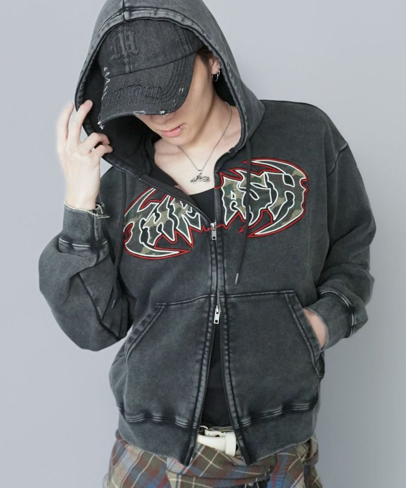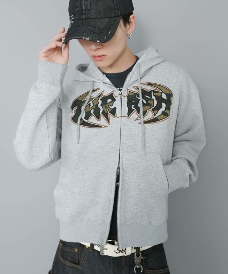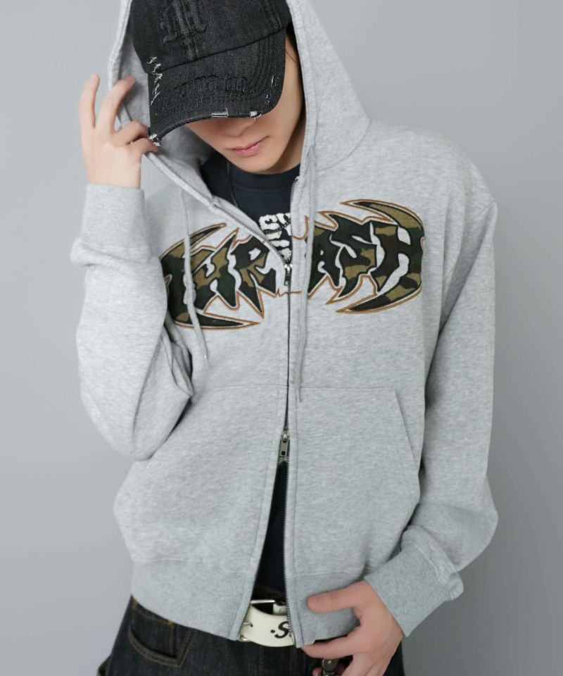 存在感抜群のカモフラージュ柄パッチワークロゴを