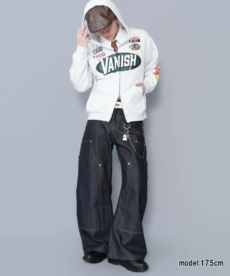 目を引くダブルジップパーカー。