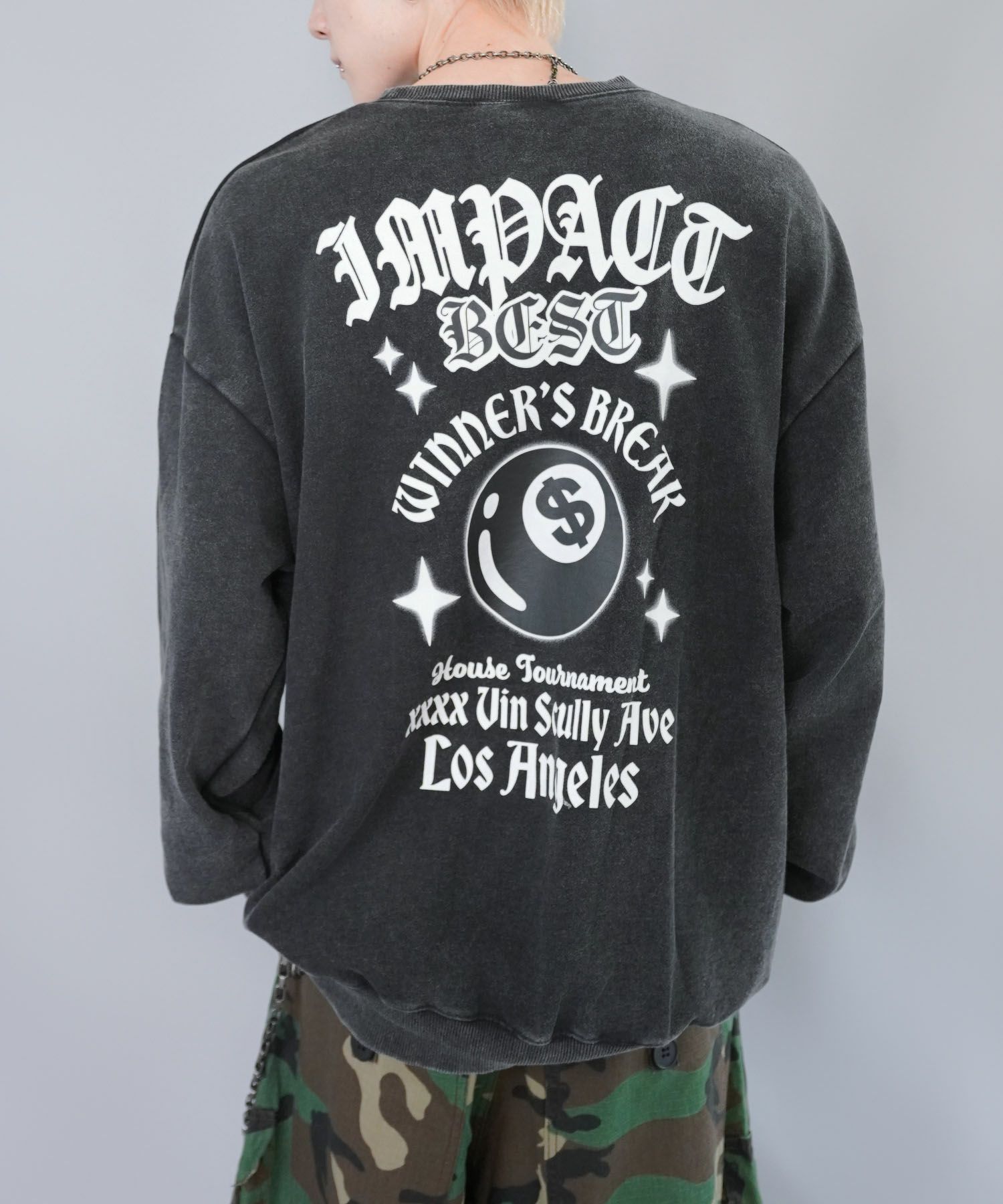 8ボールとダイスを落とし込んだスウェット。