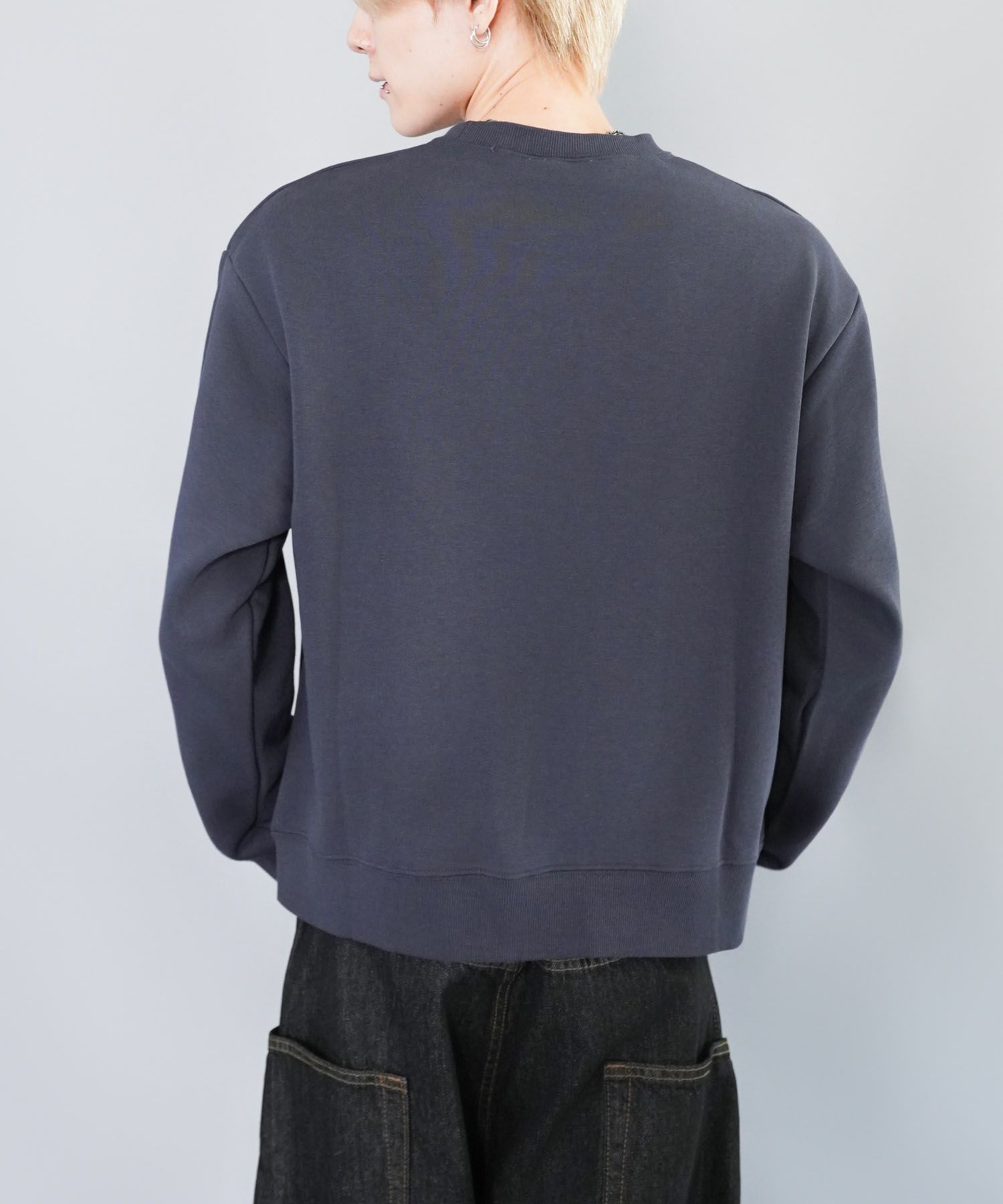 今っぽいバランスに仕上げたクルーネックスウェット。