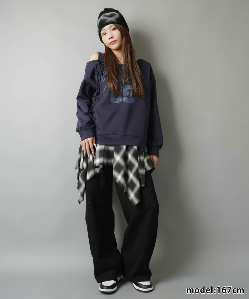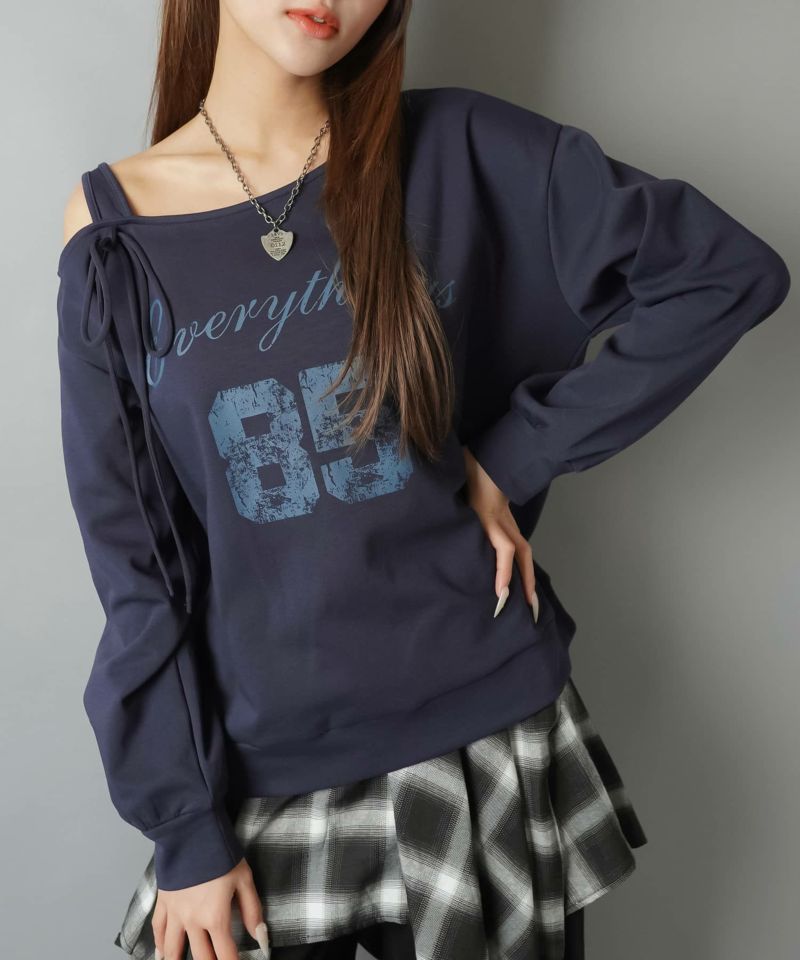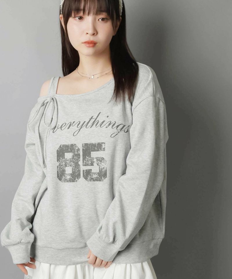 【ワンショルで女っぽさをプラス♡ ナンバリングロゴが可愛いスウェット】