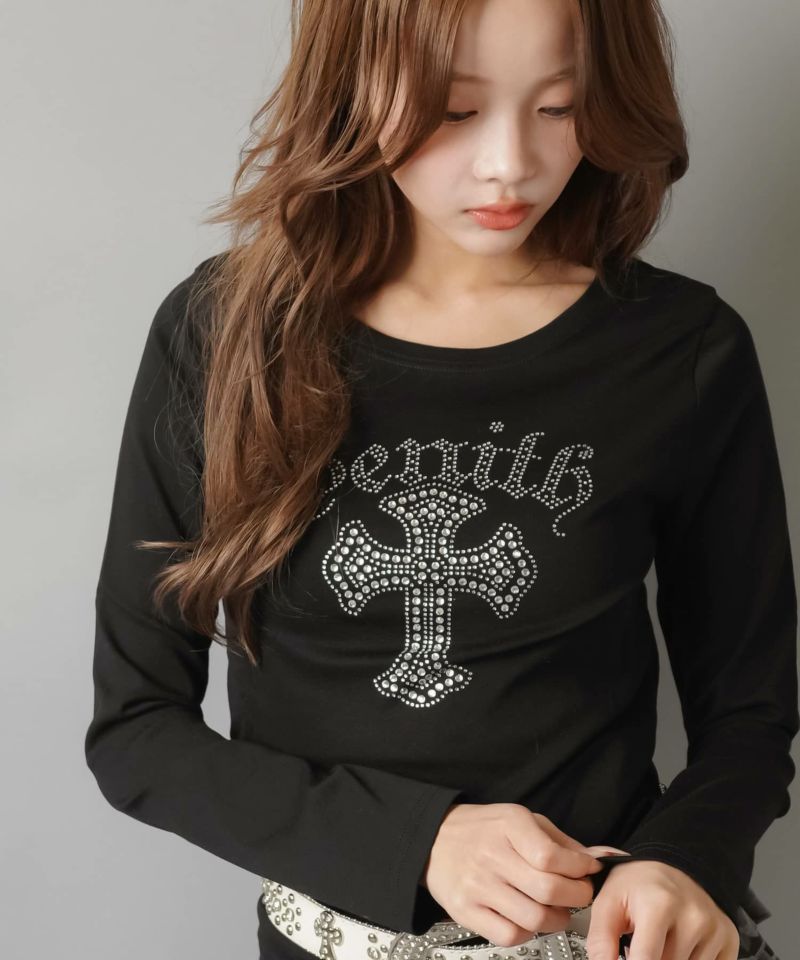 着るだけで映えるラインストーンロゴデザインの一枚?