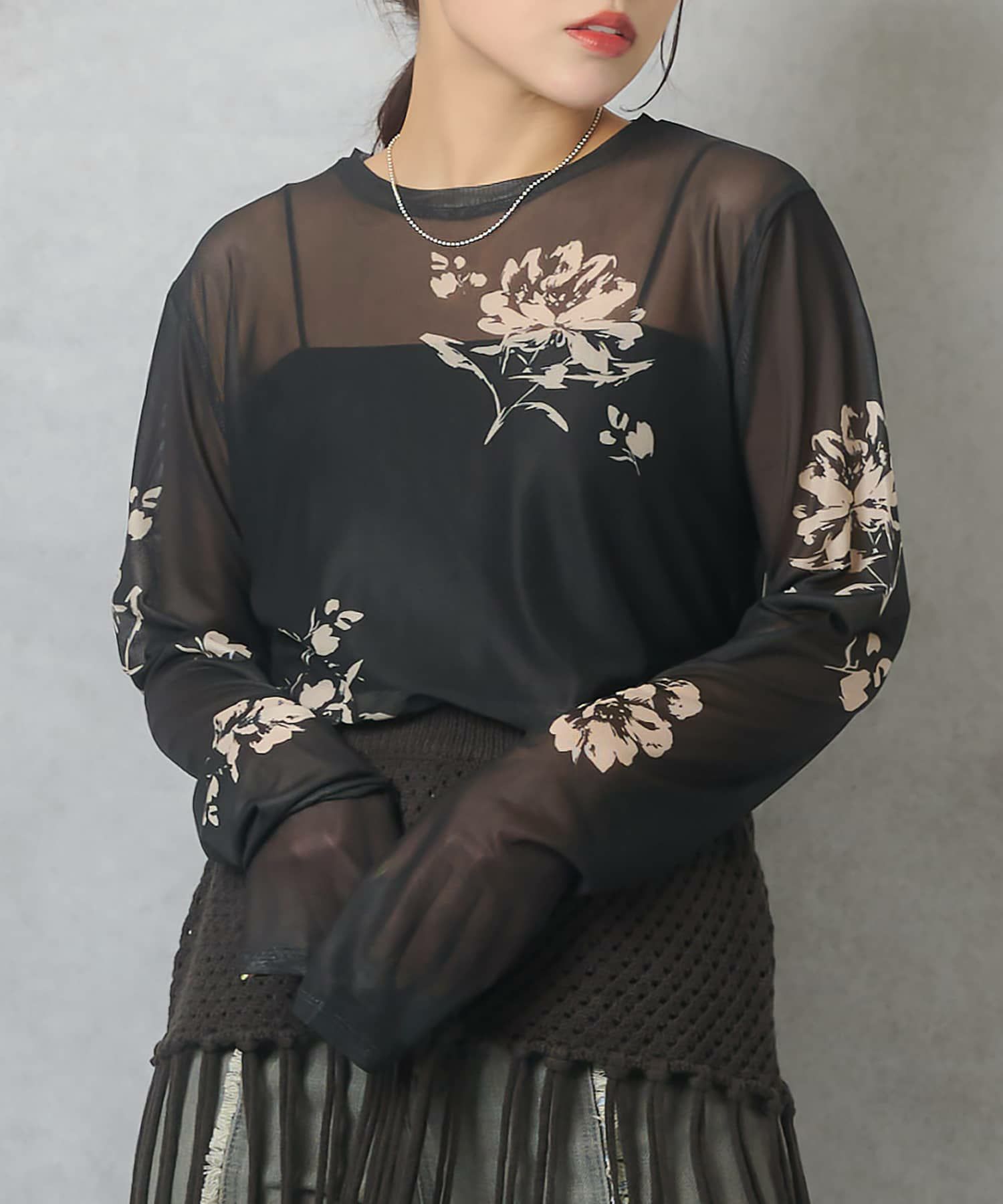【繊細なデザインとトレンド感を兼ね備えたシアートップス】