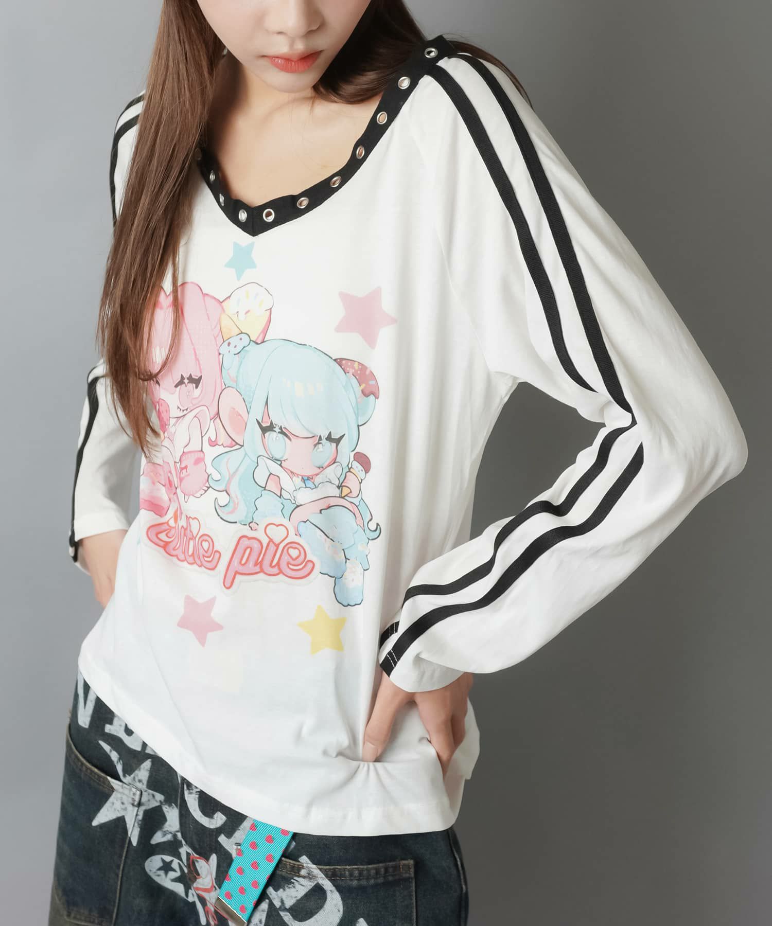 【88%OFF】Vネック長袖Tシャツ/キャラクター/#ドリームコア/#平成女児