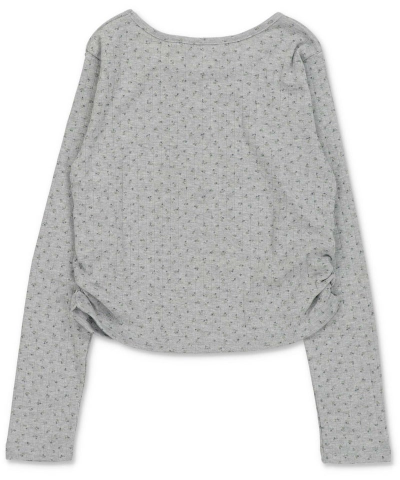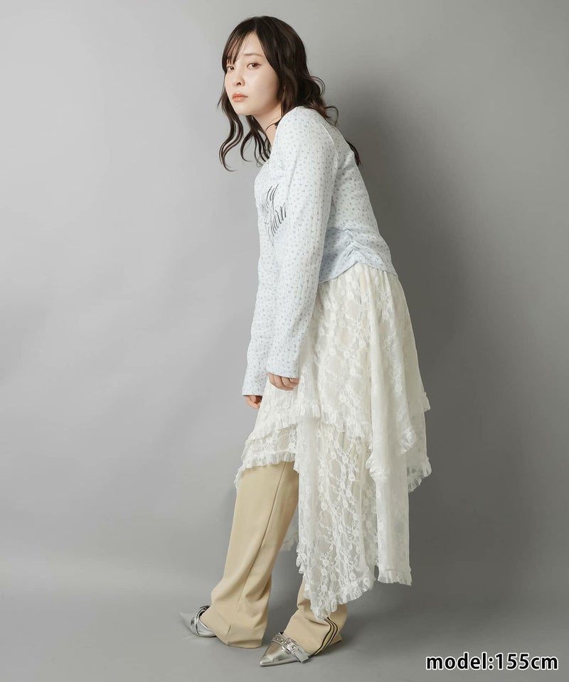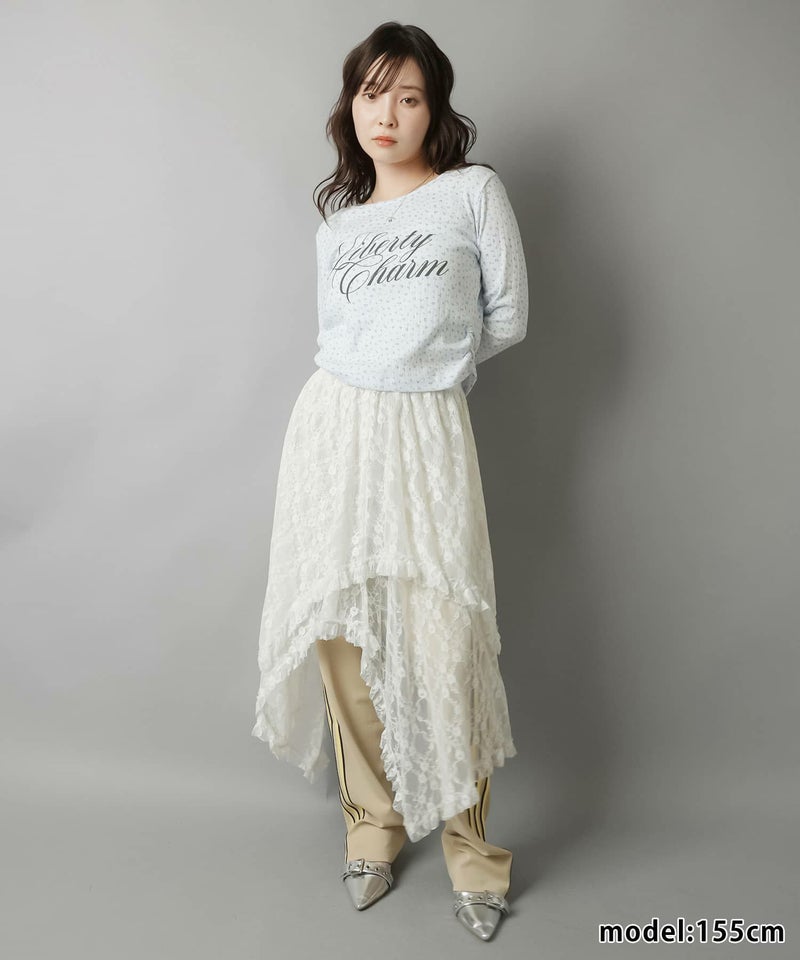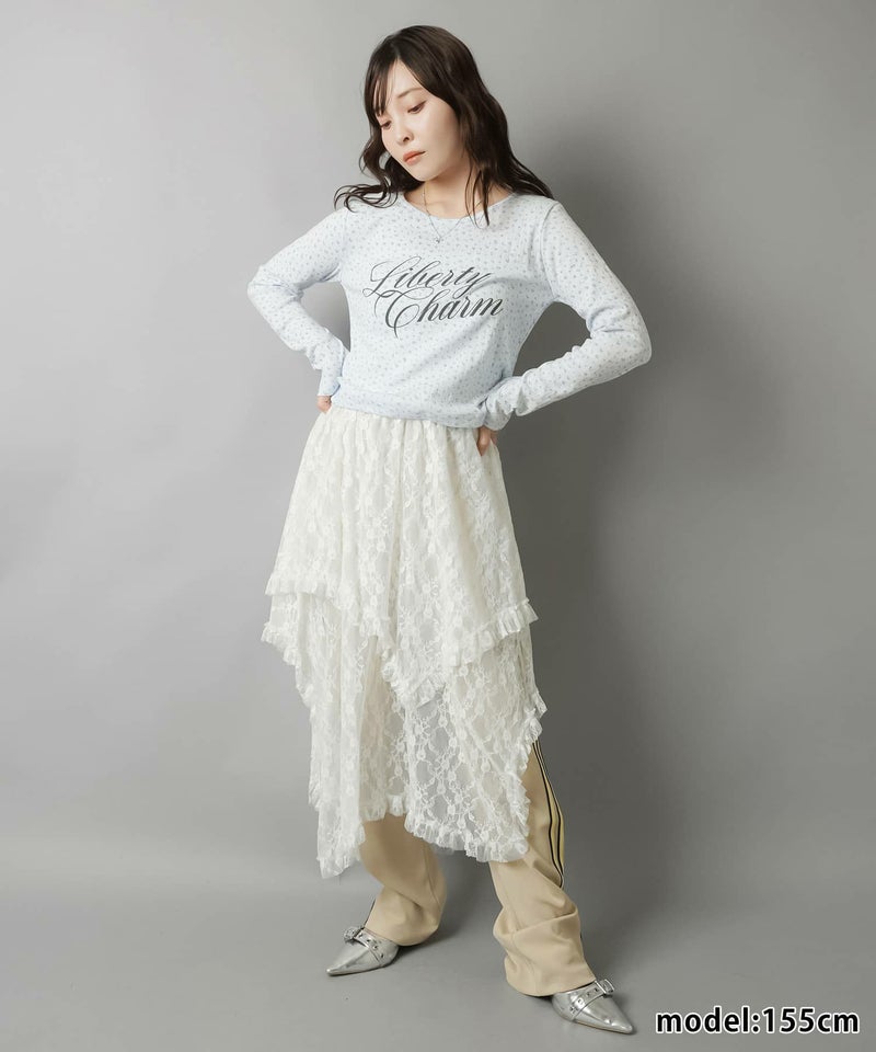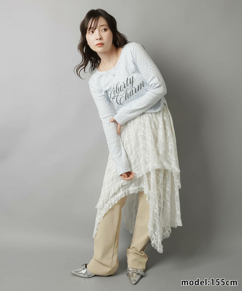 小花柄とロゴデザインが目を惹く、韓国ガーリーな長袖トップス。
