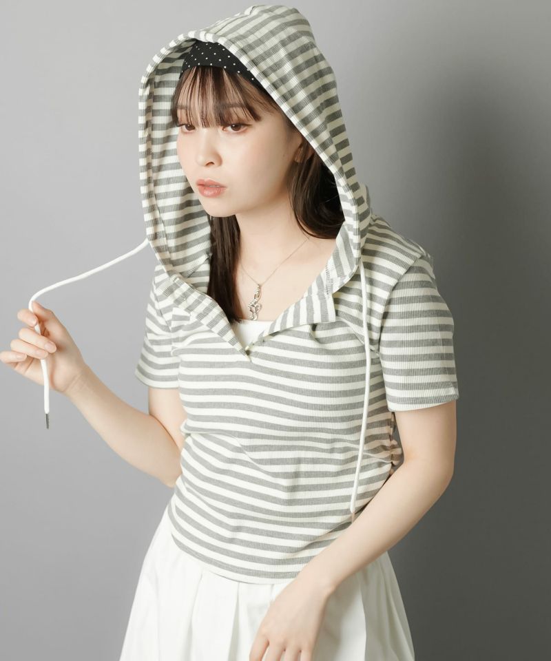 【86%OFF】半袖パーカーカットソー/ボーダー