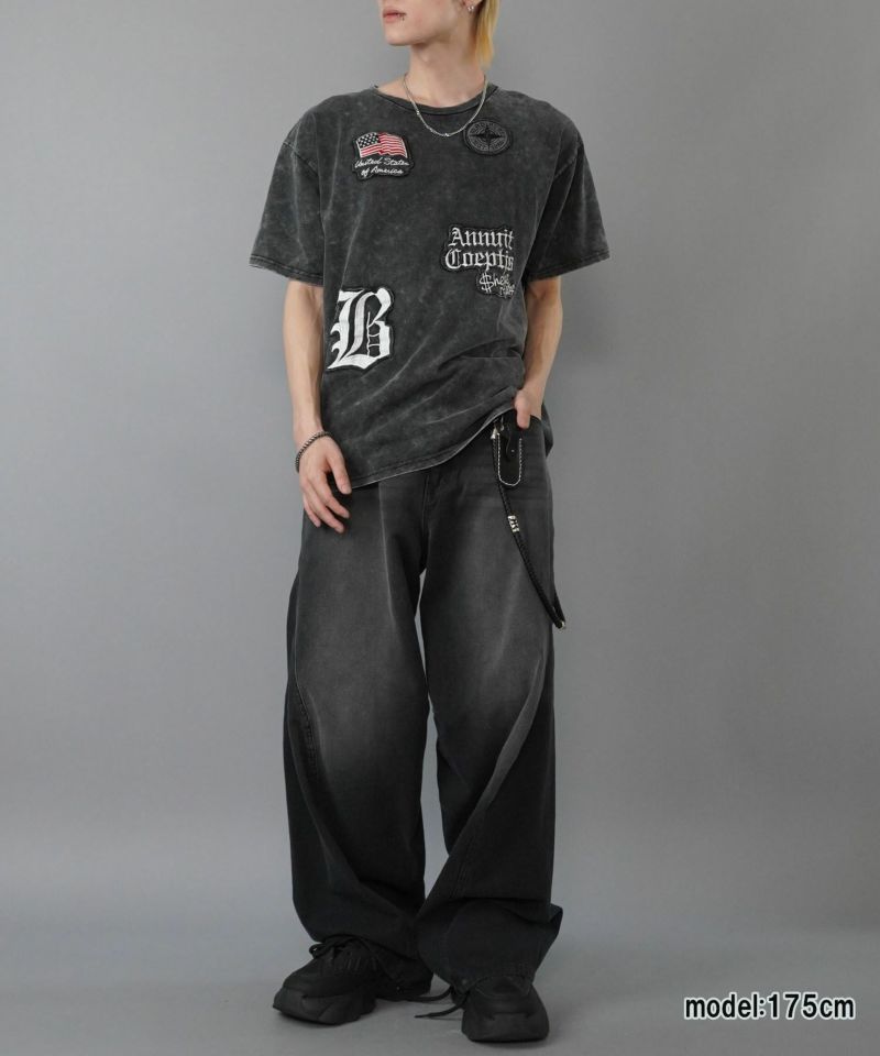 ワッペンをあしらった、ストリートTシャツ。