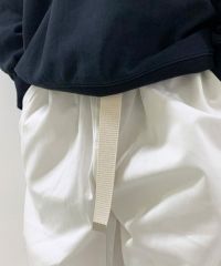 ベルトを垂らして少し見せるだけでコーデ全体のバランス感を整えてくれてスタイルを良く魅せてくれる。