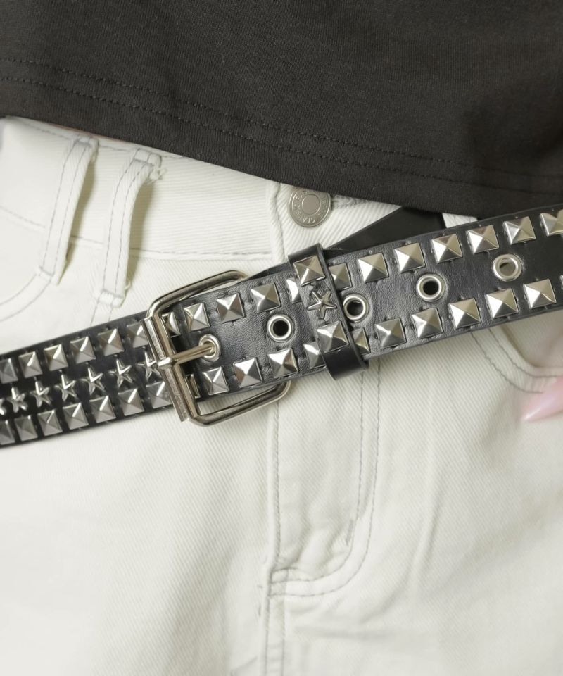大きめサイズで斜めがけもOK🌟 合皮ベルト/スクエアスタッズスター