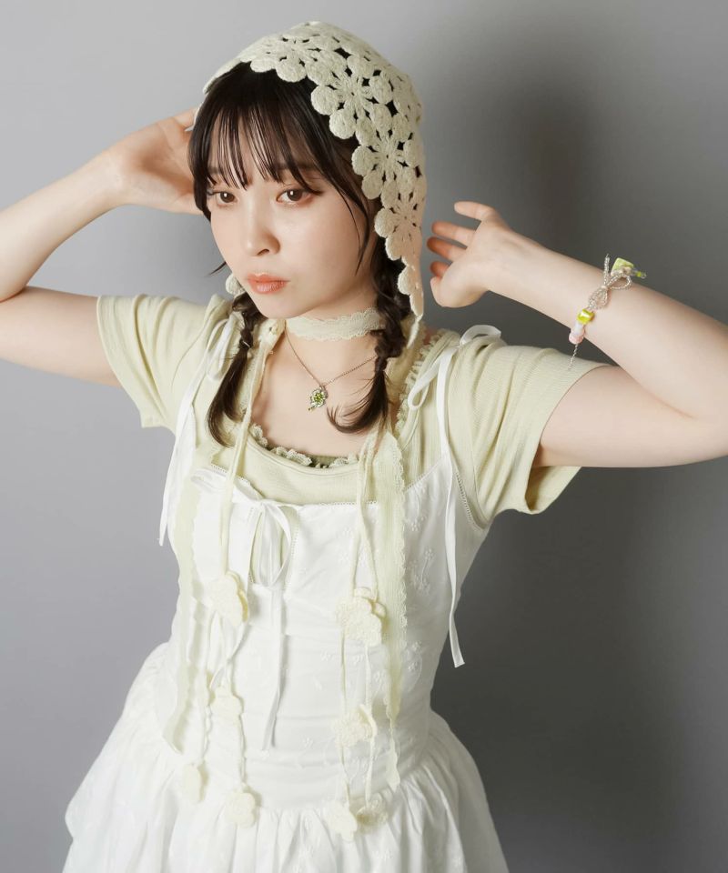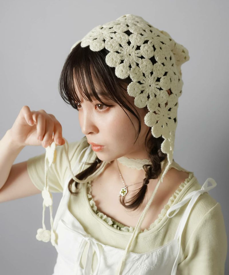 【95%OFF】ニットキャップ/紐フラワー/#NEO森ガール