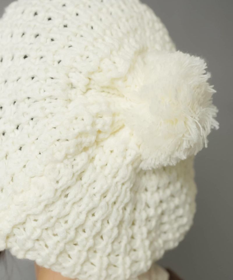 【95%OFF】カギ編みベレー帽/コットンニットキャップ/ポンポン