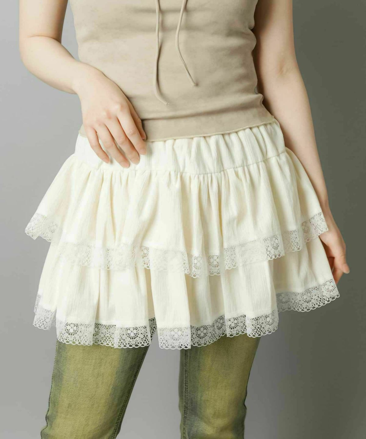 ティアードミニスカート/やわらかレース/インナーパンツ付き