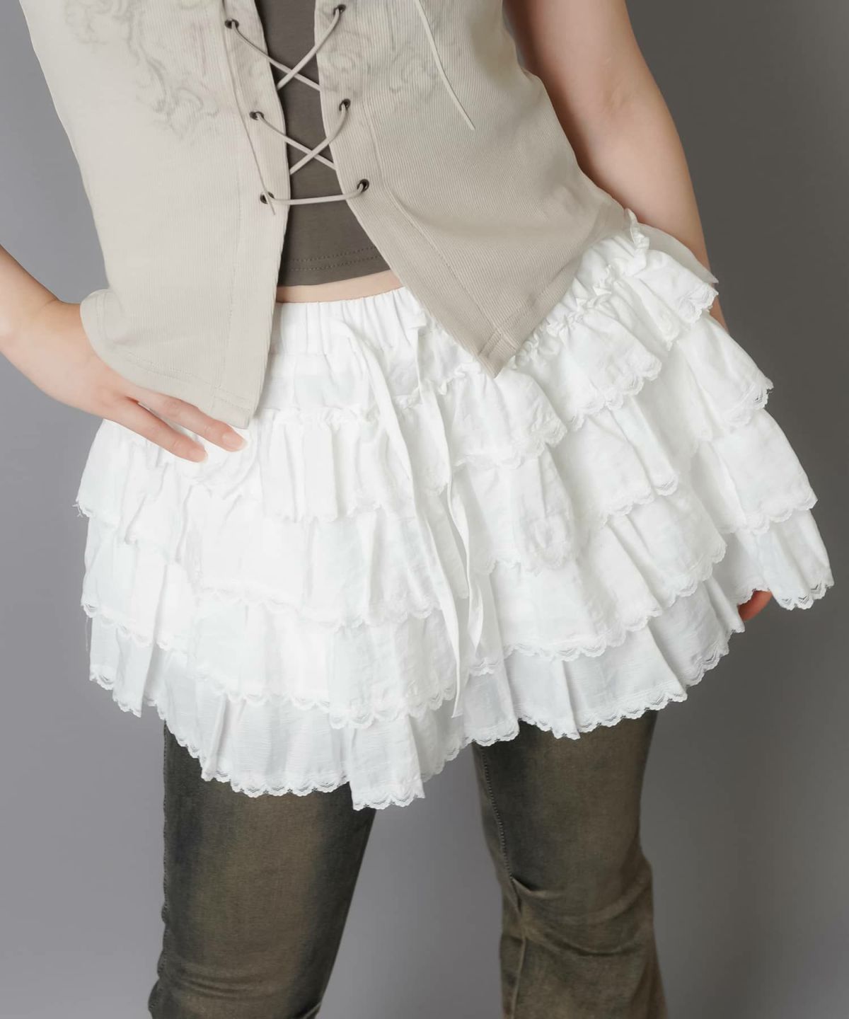 【39%OFF】レースティアードミニスカート/インナーパンツ付き