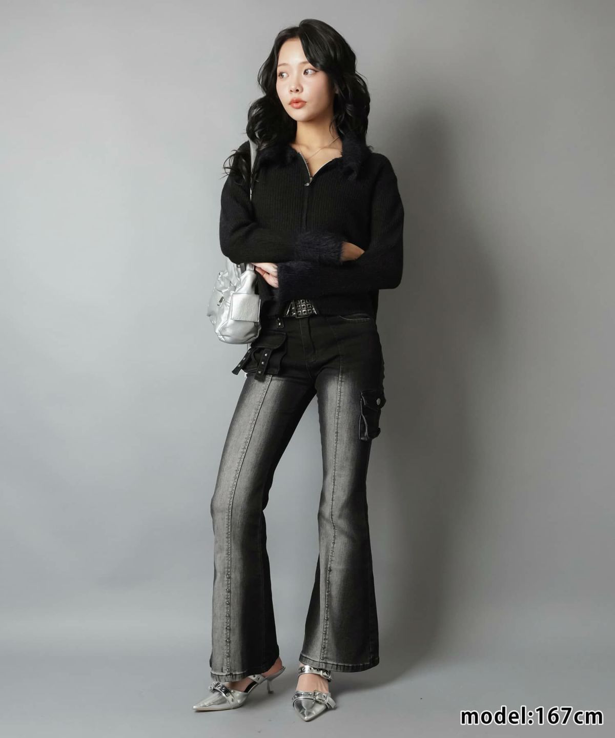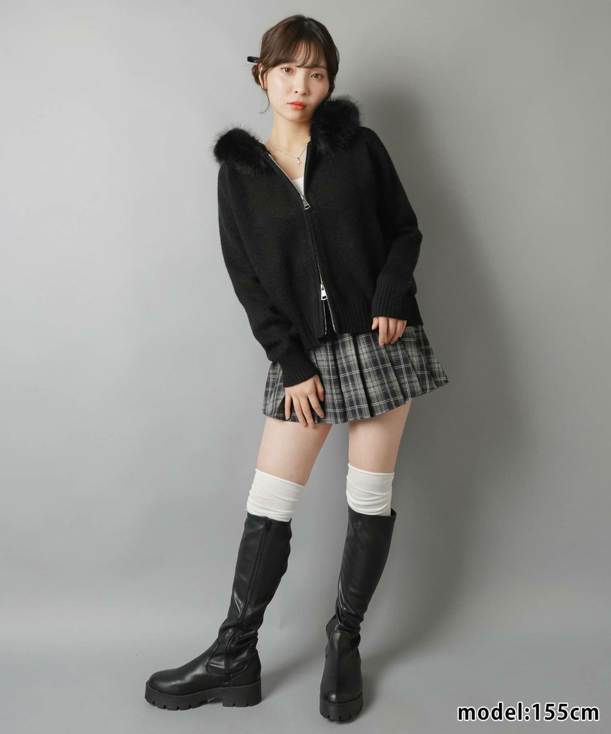 襟付きジップカーディガン/ミックスフェイクファー/タイト/#平成ギャル