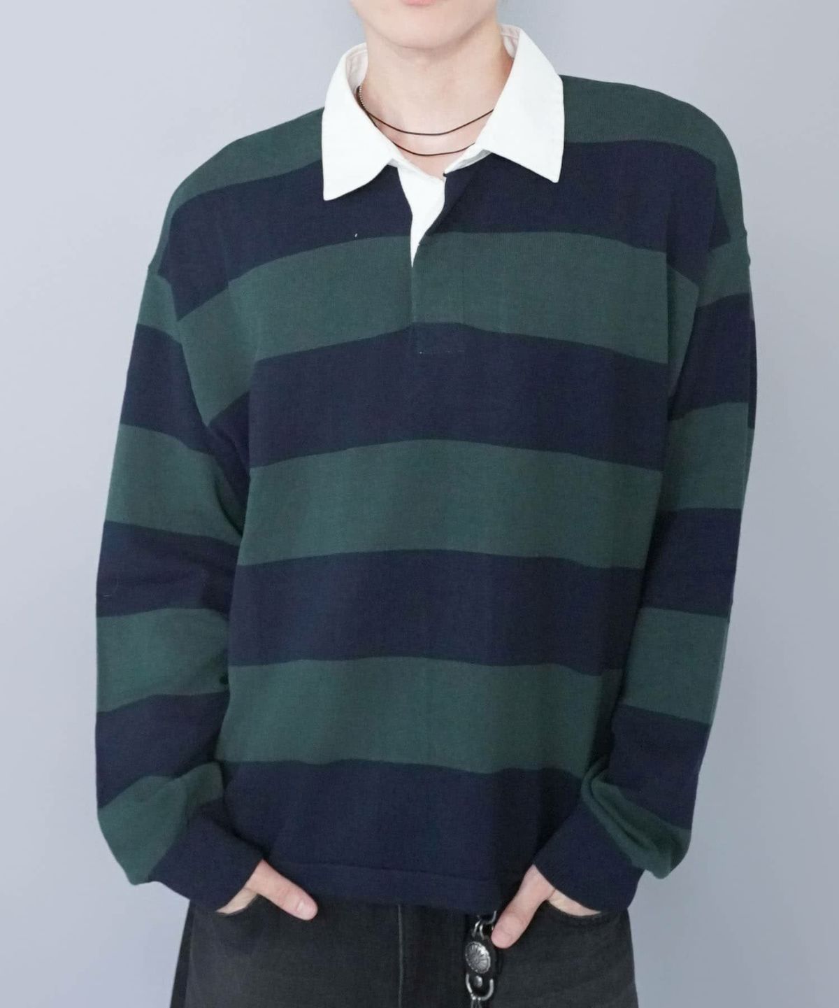 【67%OFF】クラシックボーダーラガーニット/薄手/襟付き/太めボーダー/チクチクしない