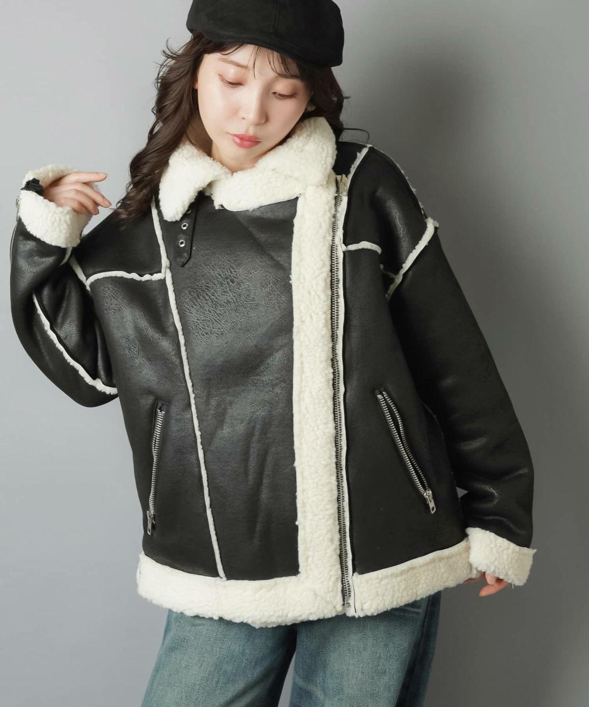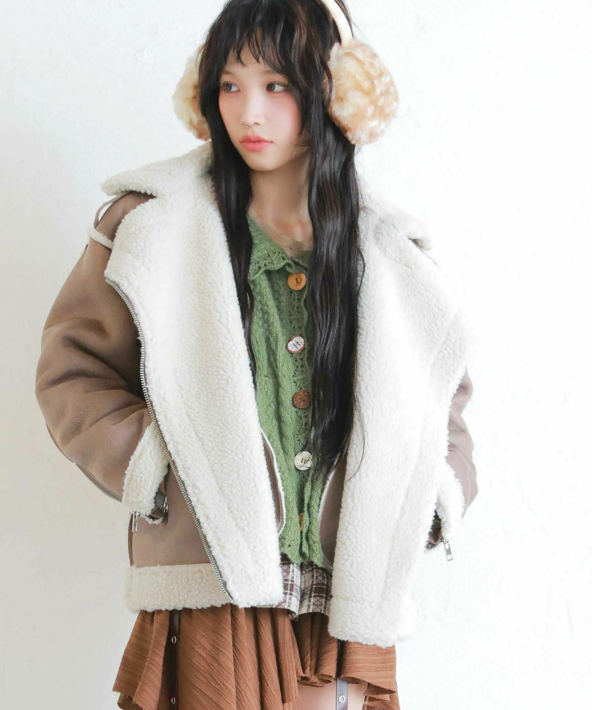NEO森ガールのアウター探してるならコレがピッタリ🌳🐿 オーバーサイズボアムートンジャケット/切り替え