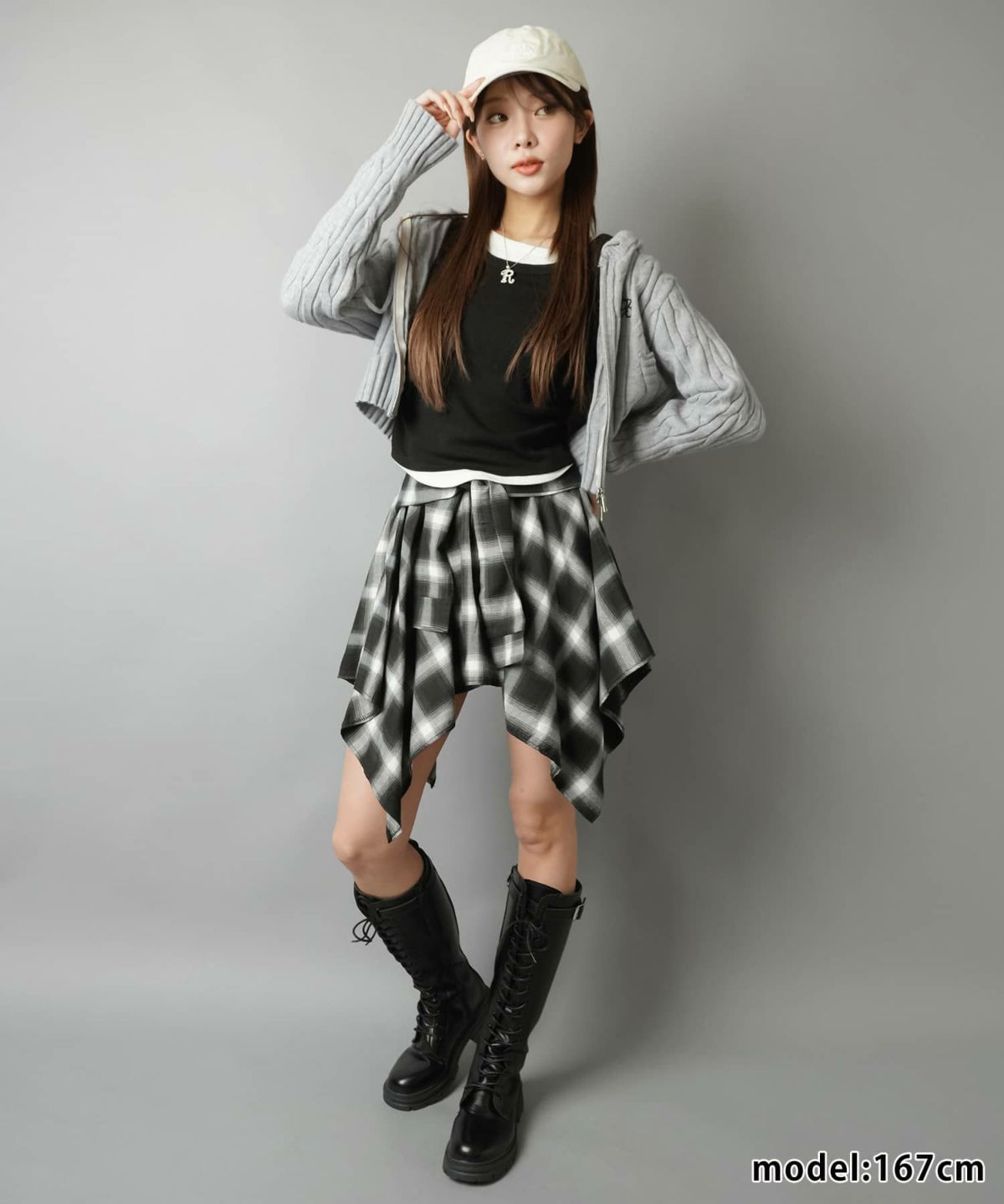 2サイズ展開/チェック柄イレヘムミニスカート/スタッズベルト/インナーパンツ付き/#ロマンスパンク